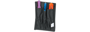Versatile nylon pouch holds knives, pens and other small tools.